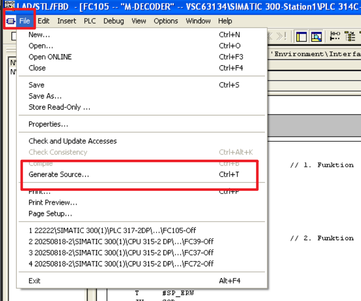 第一步得把程序轉成 AI 能認的 “源文件”。老周點開 Step7 的 “File(文件)”,選 “Generate Source(生成源文件)”;